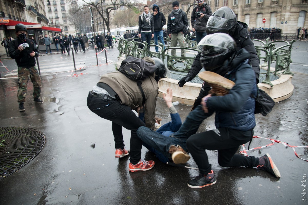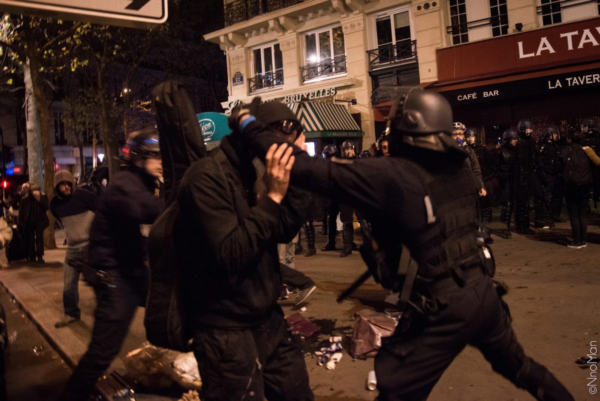 Le pire, c’est que mon casier judiciaire est totalement vierge, je n’ai jamais subi de garde à vue de toute ma vie.Quels sont vos rapports avec les policiers ? Je ne dépends pas des forces de l’ordre dans mon travail de photographe. Pour autant, même lorsqu’il m’arrive de subir des provocations, je garde le vouvoiement et je tente d’éviter le conflit. Lors d'une des manifestations contre la loi travail la tension est montée d'un cran. Après plusieurs heures de manifestation, alors que la tension était à son comble, un policier m’a clairement braqué un Flash-Ball à 30 centimètres. J'étais obligé de leur faire comprendre que j’étais journaliste et qu’ils n’avaient pas à agir de la sorte. Cela vous fait-il réfléchir sur la liberté de la presse ? Je n’ai fait que mon métier : couvrir l’actualité avec mes photographies. Lorsque je suis présent dans une manifestation, je ne peux pas faire semblant d’être là et me cacher au loin pour prendre mes photos.