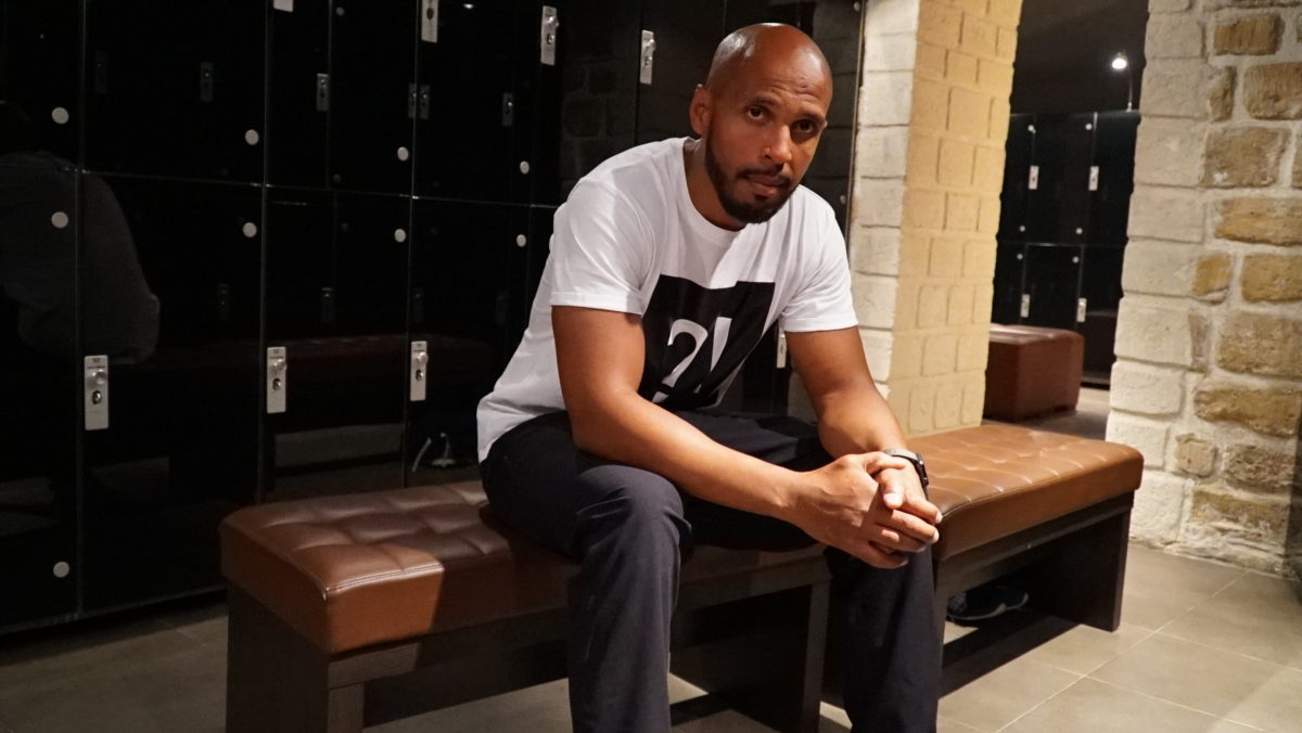 Joel Bouraïma dans les vestiaires de la salle de sport l'Usine, à Paris.