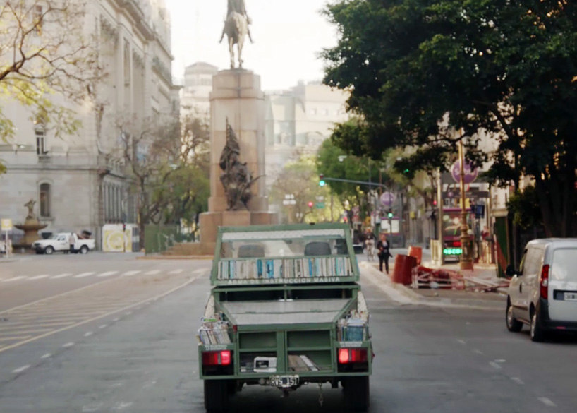À Buenos Aires, le 5 mars, on a pu voir déambuler dans la ville ce qui ressemblait à un char de combat, à la différence que celui-ci était totalement inoffensif, voire carrément bienfaiteur puisqu'en l'honneur de la Journée du Livre, il a distribué aux passants et gratuitement plus de 900 ouvrages, romans, biographies, recueils de poésie etc. L'agence de 7up, dans la continuité de sa campagne "Feels good to be you", a ainsi demandé à l'artiste excentrique Raul Lemesoff de construire une oeuvre assez originale afin de "passer le mot" (avec ou sans mauvais jeu de mots...). C'est à partir d'une Ford Falcon que le créateur a alors créer son arme d'instruction massive.