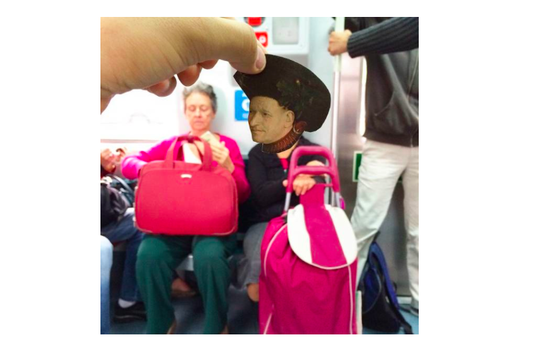 Dans ses livres d'Histoire de l'Art, l'artiste découpe des portraits de grands maîtres de la peinture, des détails de leurs oeuvres ou encore certains de leurs personnages. Il les emmène en promenade dans les rues de Saõ Paolo, sa ville, puis les prend en photo. Depuis trois mois, il poste ses réalisations sur un