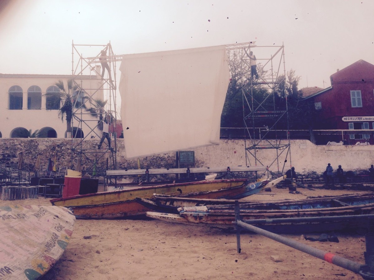 La Plage de Gorée en cours d'installation pour le festival © Gorée Cinéma