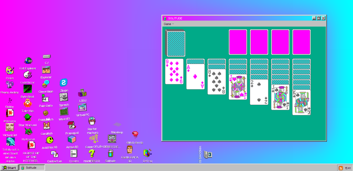 En visitant www.windows93.net, l'internaute replonge dans le monde coloré et strident des ordinateurs de cette époque bénie. Il ne manque que le ronronnement parfois bruyant des énormes unités centrales de cette génération pour qu'on s'y croie réellement. Toutes sortes de programmes vintage sont installés sur ce simulateur en ligne, qui reproduit même des bugs de manière très réaliste. Ainsi, "Zkype" refuse de s'ouvrir, sous prétexte qu'une orgie de chats  sataniques empêche son fonctionnement.