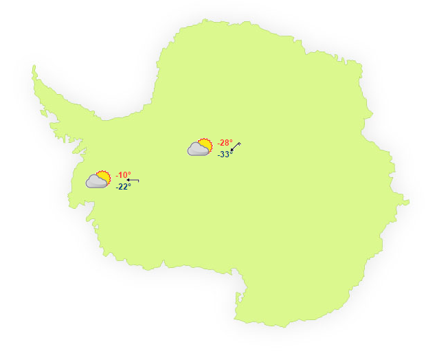 Bien que l'emploi débute en septembre prochain, donc au début du printemps austral, il faudra aussi faire preuve d'endurance : les températures promettent quand même d'être extrêmes. Voilà la météo du moment en Antarctique :