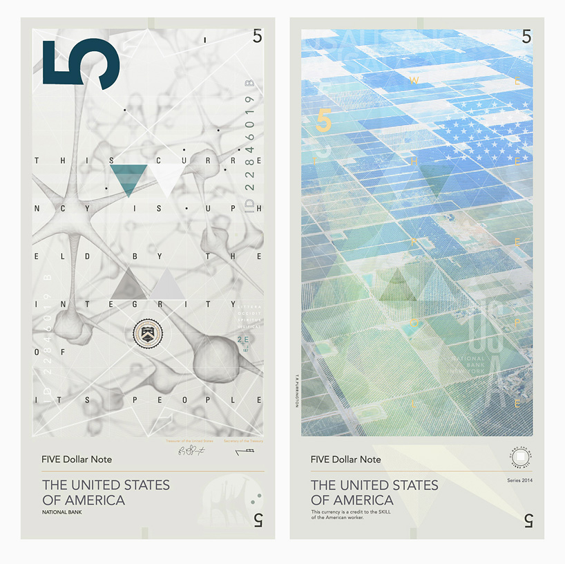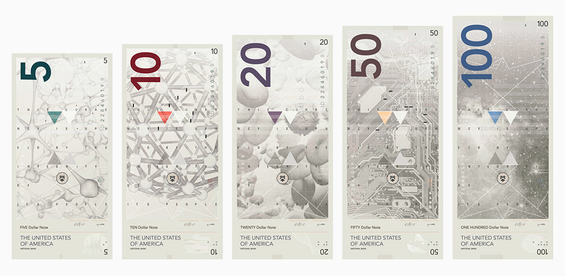 C'est dans le cadre de son projet de thèse à l'École de Design de Bâle que Travis Purrington a proposé une alternative graphique aux très célèbres dollars américains. Exit les bustes des ancêtres, pères bâtisseurs des États-Unis d'Amérique, Georges, Abe et les autres passent à la trappe aux profits de valeurs plus humanistes, environnementales, et technologiques.