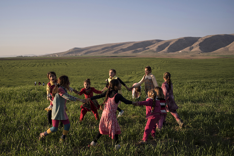 © Michel Slomka : Des petites filles forment une ronde à l’extérieur du camp de réfugiés de Sharya, au Kurdistan irakien. Irak, 2016