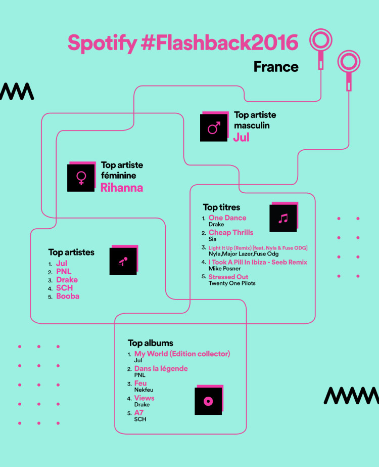 Et la palme de l'artiste le plus streamé en 2016 en France revient à... Jul. Clap clap clap ! Il est à la tête de deux classements : "Top albums" et "Top artistes" suivi de PNL, Drake, SCH et Booba. Cette année encore, le rap domine le paysage musical français. En 2015, Nekfeu était premier (il n'est pas resté à sa place) suivi de Jul, Maitre Gims, Rihanna et Booba.[caption id="attachment_50857" align="alignnone" width="750"]