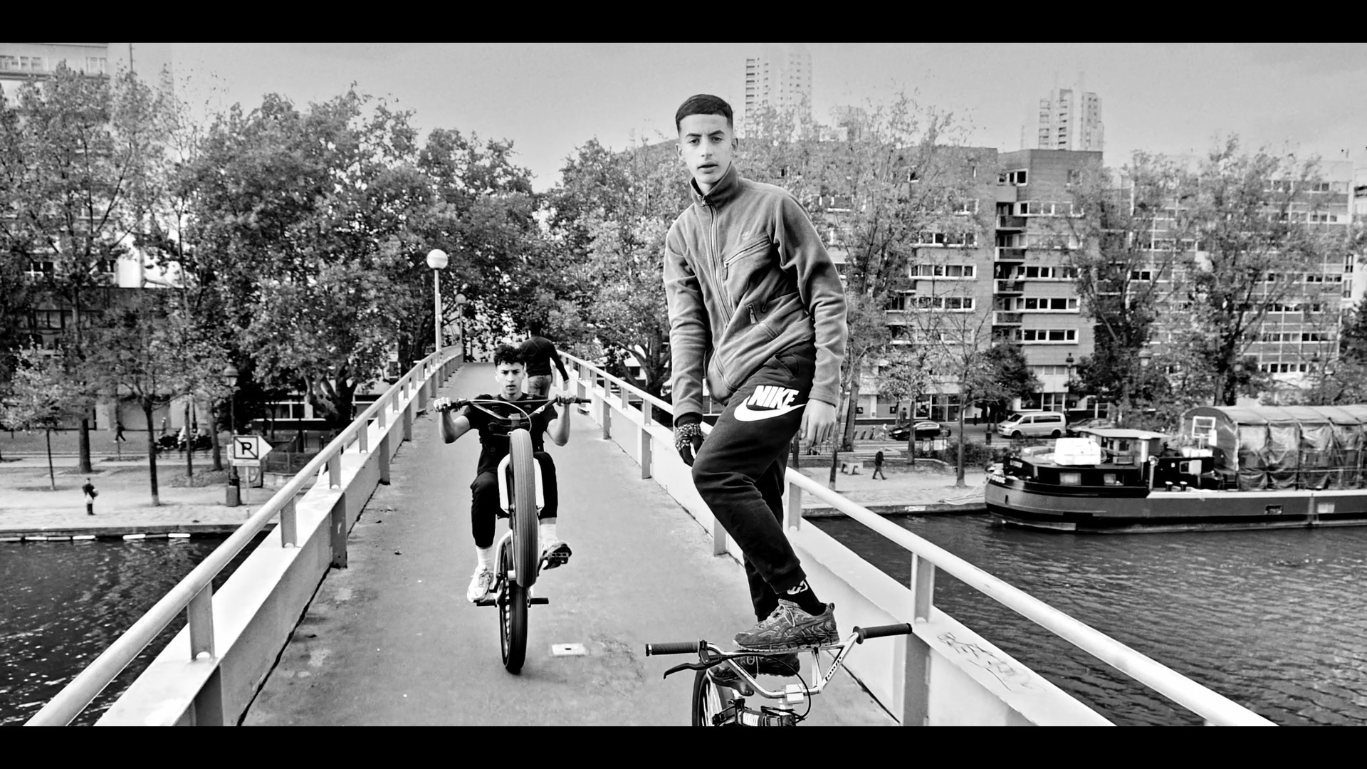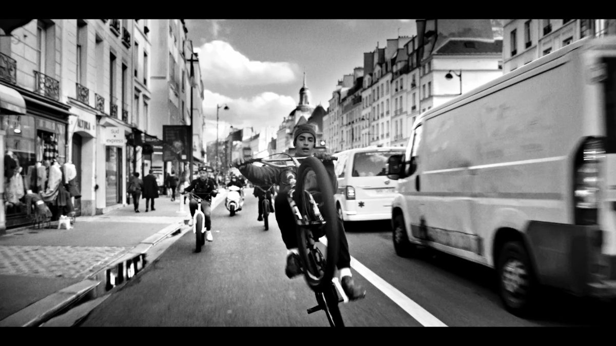 Floor Seats d’A$AP Ferg qui, l’année dernière, avait déjà mis à l’honneur et en musique la bike culture - le rappeur new yorkais étant lui-même un grand fan de BMX. Pendant quatre minutes, on suit donc deux puis trois bikers parisiens, sur les ponts, les quais, la place de la République ou entre deux files à l’arrêt, toujours à deux doigts d’une collision avec un taxi ou un piéton inattentif.