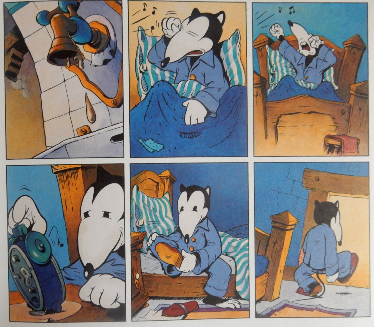 Cet album était un poil oublié de tous et même s’il y a eu le fameux "Pinocchio" de Winshluss depuis, il demeure une formidable satire de l’univers de sieur Walt et de sa première salve de dessins-animés (oui, je sais bien que Pinocchio c’est un livre de Collodi, à la base, mais j’y peux rien si mon esprit d’ancien gamin de 11 ans est ainsi corrompu).