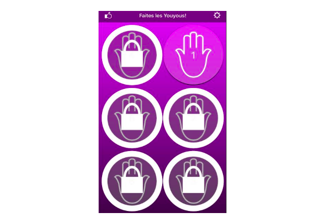 En Afrique du Nord et au Moyen-Orient, notamment chez les juifs et les musulmans, les youyous sont des cris de célébration, traditionnellement poussés par les femmes pour exprimer leur joie. Pour tous ceux qui s'y essayent sans succès, la solution tient en un mot : YouyouBox. Cette application smartphone, gratuite sur l'App Store, permet de diffuser des sons de youyous pré-enregistrés, en touchant du doigt un bouton en forme de main de Fatma. Comme les youyous varient selon les régions, l'utilisateur a le choix entre 9 sons - mais pour tous les débloquer (et pouvoir les combiner), il faudra tout de même se délester de 99 centimes.