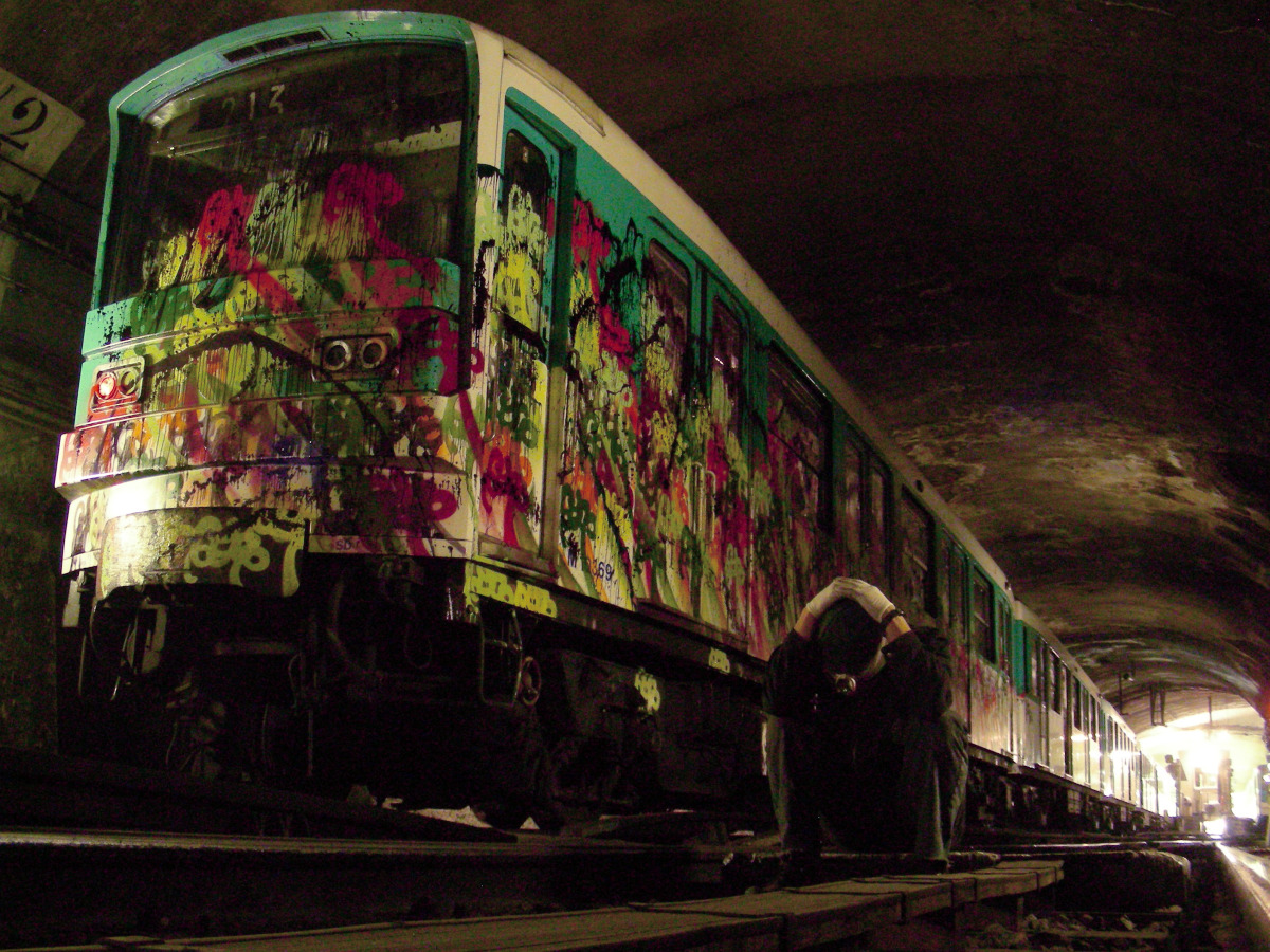 la vraie matière» et traque les places qui ont échappé au pelliculage de la RATP. Ici et là entre deux wagons ou en dessous des marchepieds. Fait ce qu’il nomme les « places discrètes », comme les moteurs, les têtes et même parfois