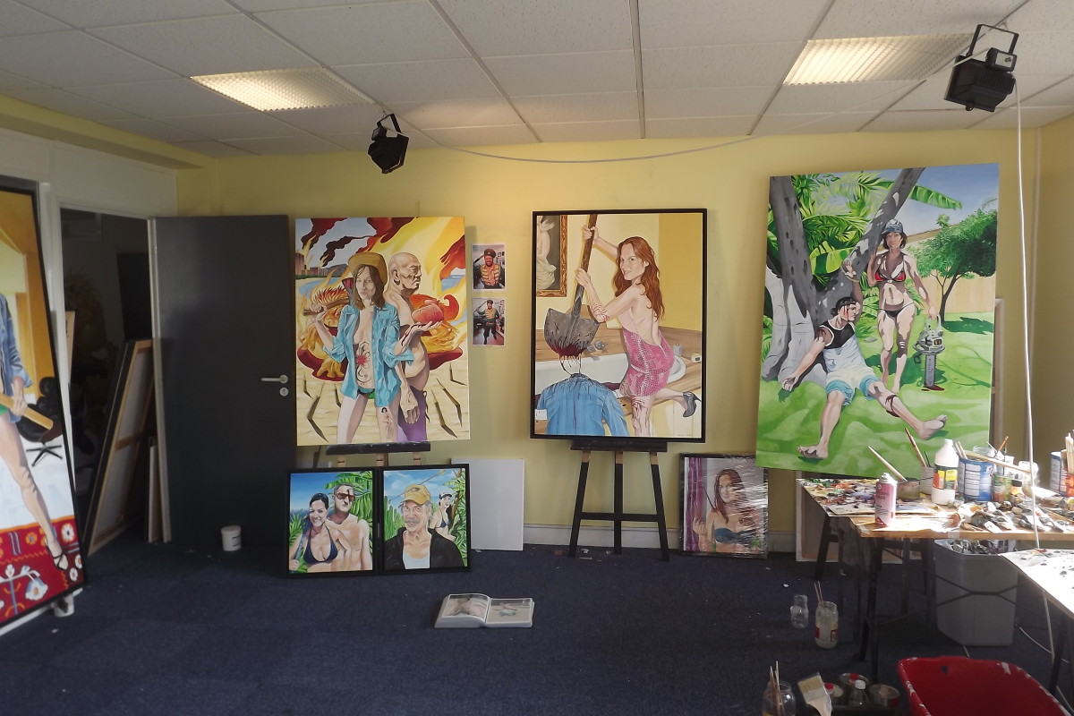 "Moi ça me fait rire ! Mais j'avoue qu'il y a certaines toiles que je ne montre pas à mes enfants. C'est compliqué d'expliquer : "Bah là c'est maman qui coupe la tête de papa". À part ça, je n'ai pas de limites."
