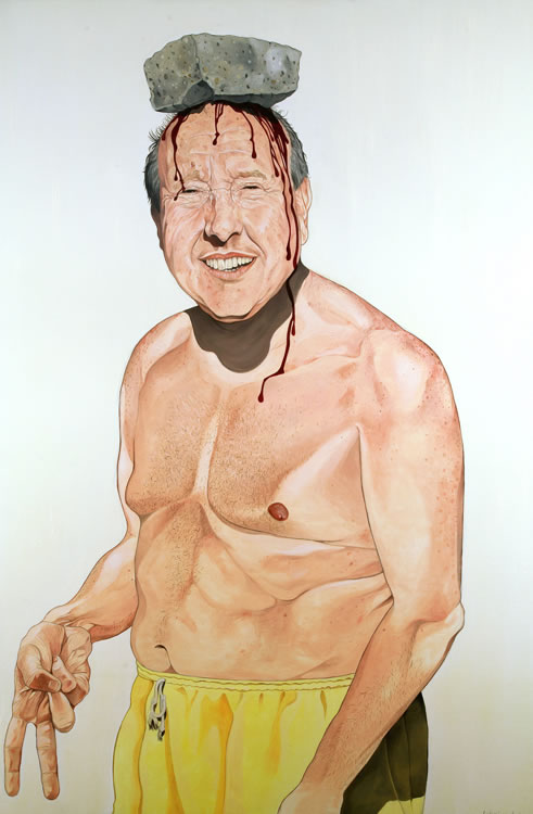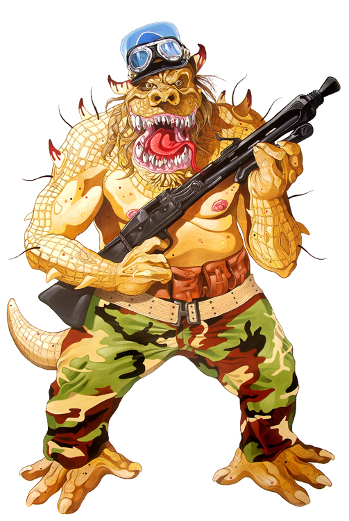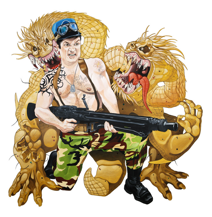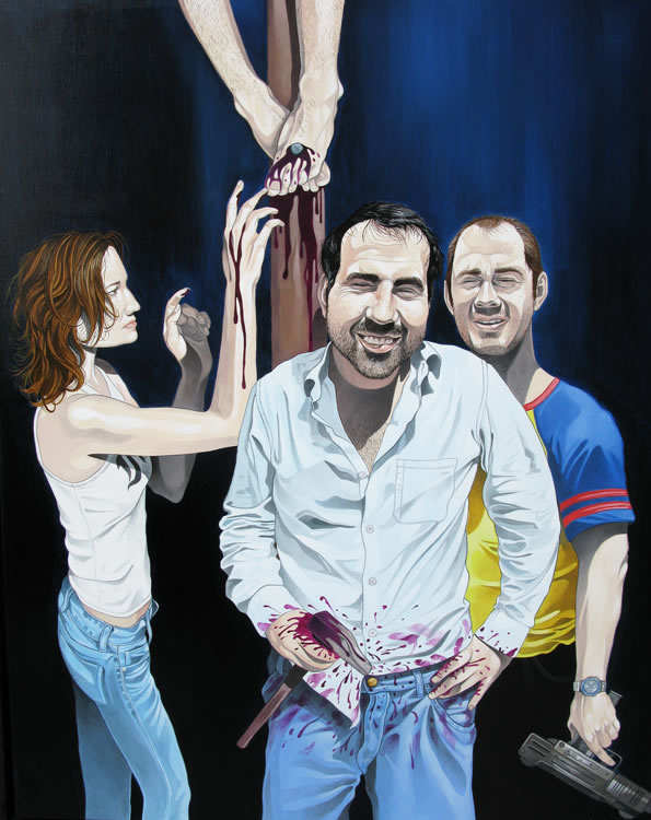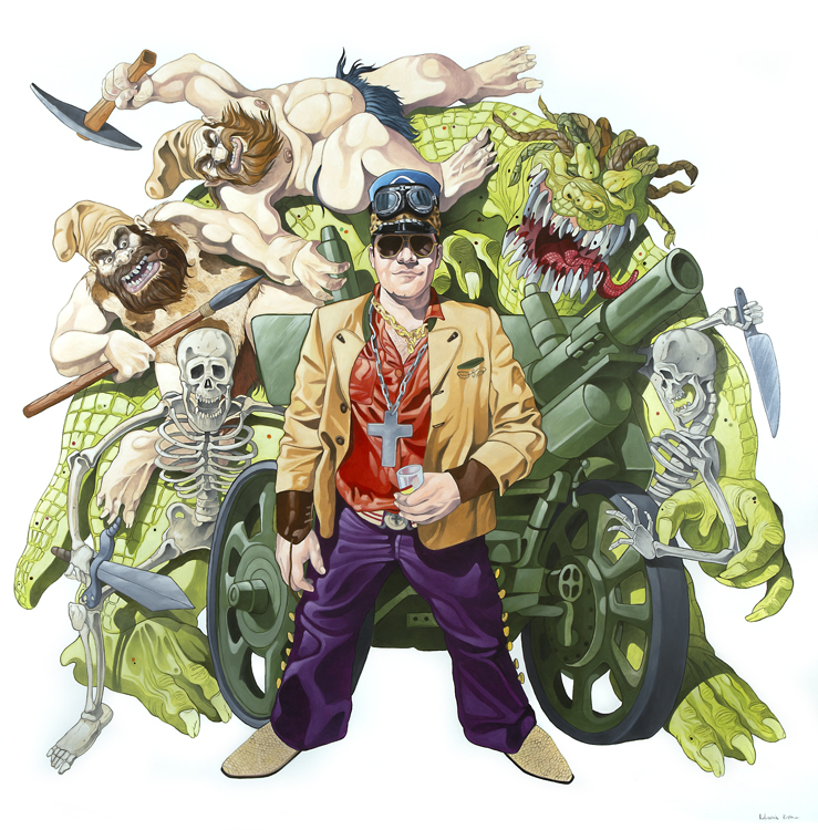"Je ne peux peindre que les gens que j'aime. Je peins très souvent des cons en train de tuer d'autres cons... il faut qu'il y ait de la tendresse malgré tout là dedans... c'est la seule façon pour moi de m'autoriser à peindre des scènes parfois presque inhumaines : parce que je sais que dans le fond, derrière tout ça, il y a beaucoup d'amour et beaucoup d'humour également !"