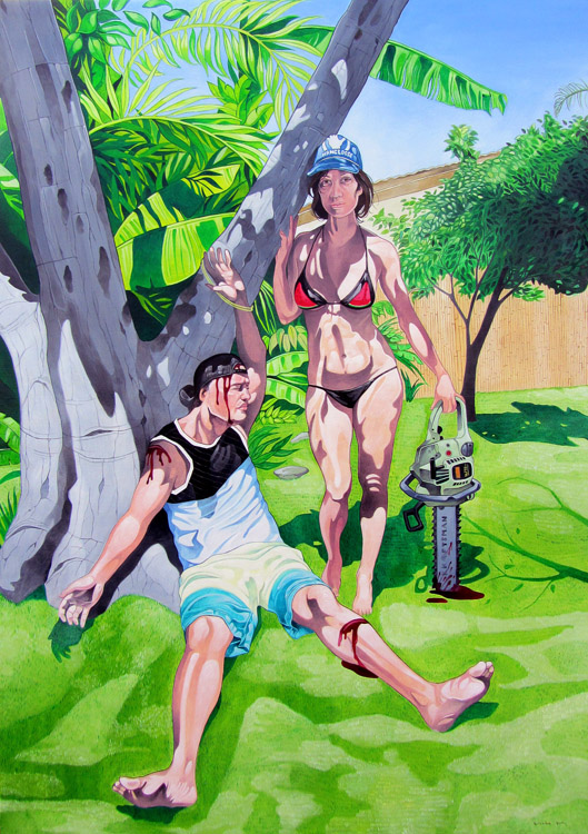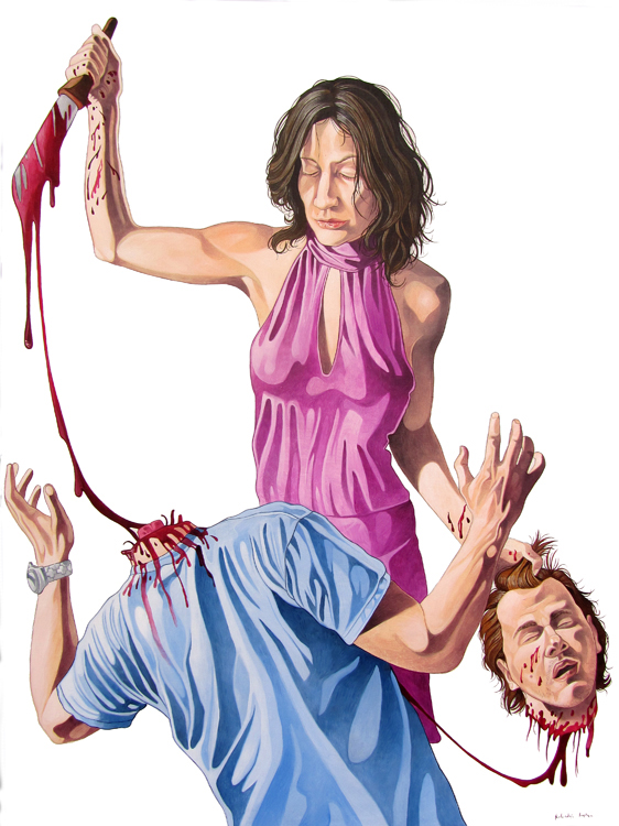 Dans ses peintures, les madames assassinent toutes leurs mecs (quand ils ne se font pas buter par des monstres cachés juste derrière eux) ou les observent mourir mais en gardant le sourire.