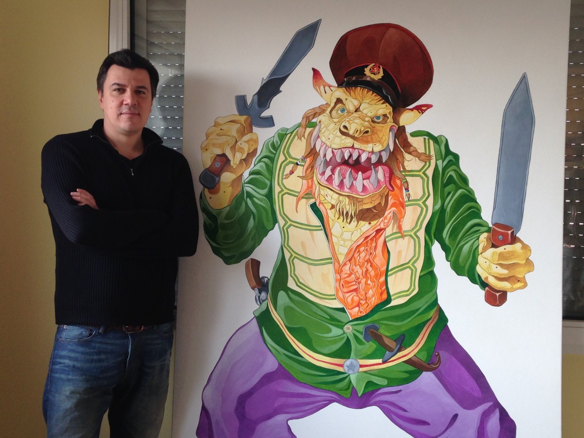 Kosta me raconte qu'il fait parti du "système" depuis toujours. Son papa est architecte et était professeur aux Beaux-Arts, et son parrain n'est autre que le célèbre Vladimir Veličković (ci-dessous), peintre serbe référence, dont le travail est largement inspiré de la noirceur vécue dans une ex-Yougoslavie, pauvre et désillusionnée.