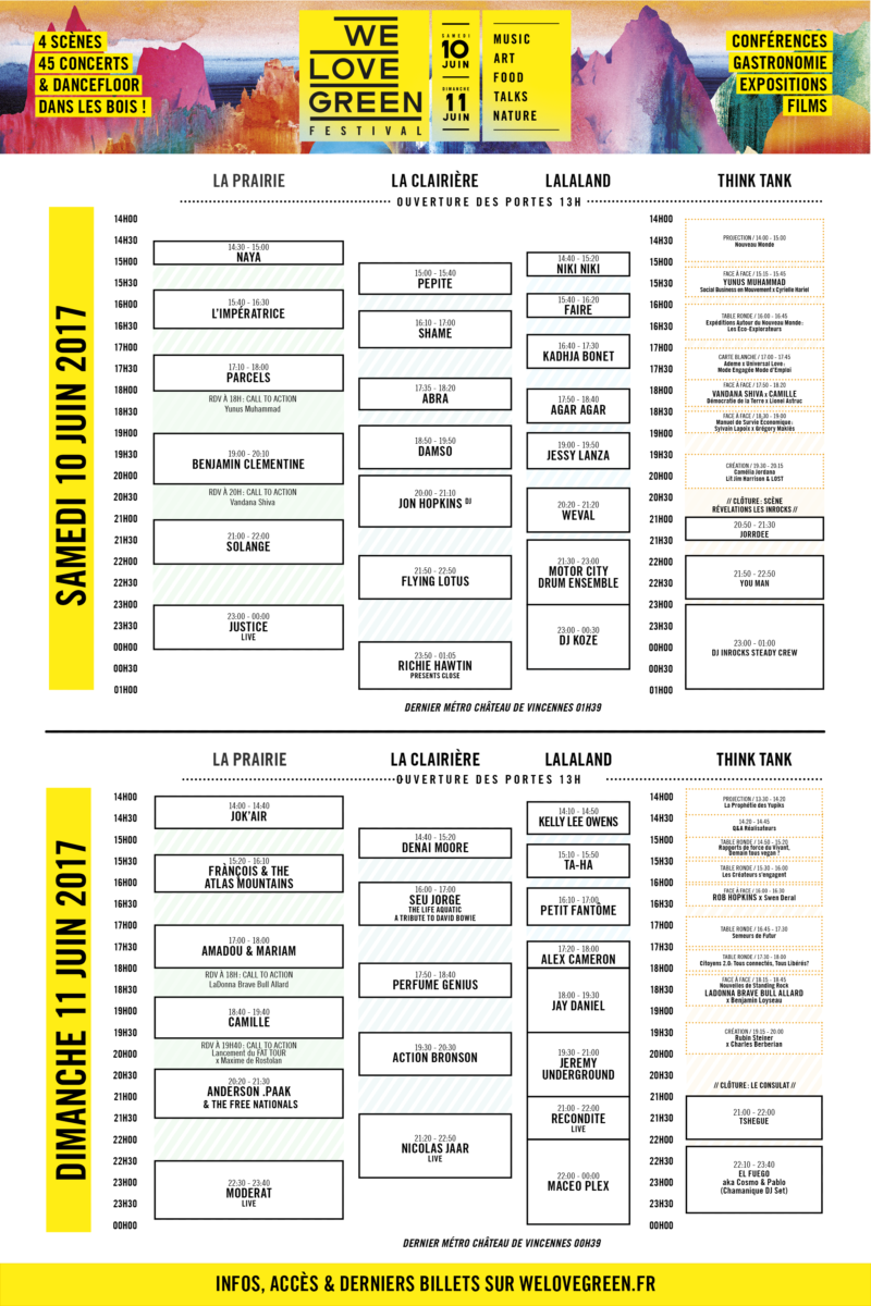 We Love Green, les 10&11 juin dans le bois de Vincennes. La programmation complète est à retrouver ici et les dernières places sont en vente sur ce lien.