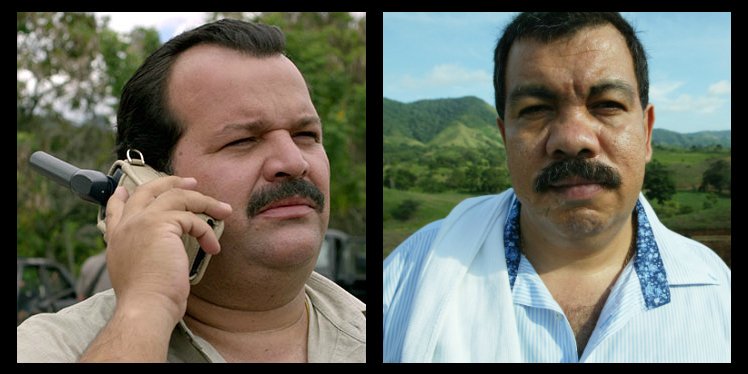 À gauche, l'acteur Mauricio Cujar, qui interprète Don Berna dans la série Narcos. À droite, le vrai Don Berna.