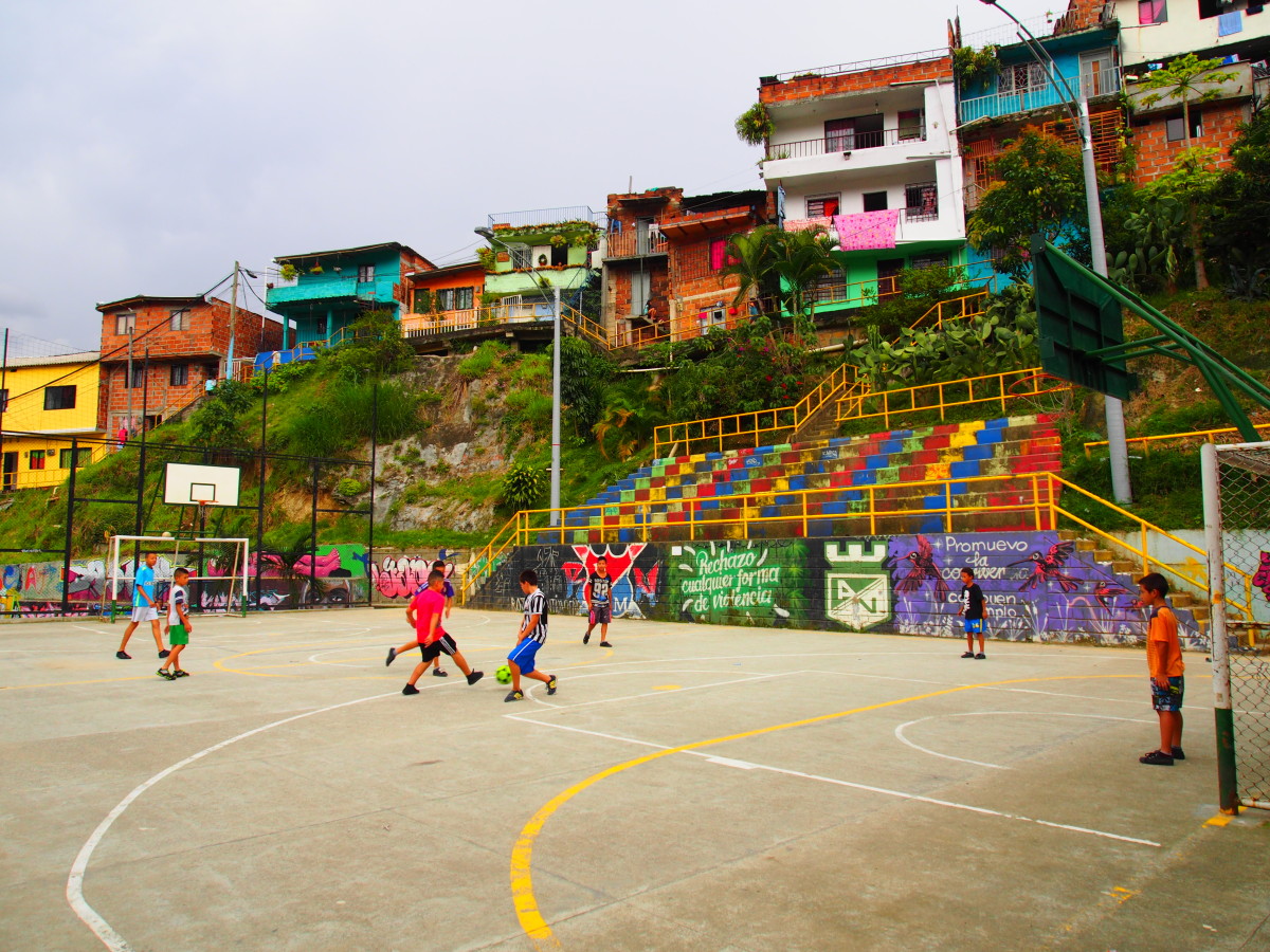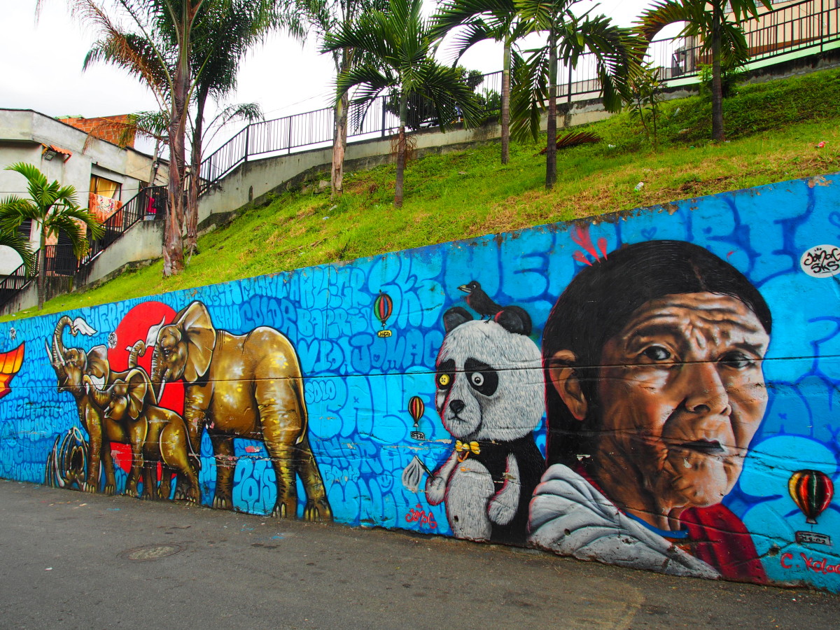 En 2014, la société colombienne Pintuco a offert des pots de peinture aux habitants du barrio pour repeindre les façades des maisons. Si on n'efface pas plus de quinze ans de violences à coups de peinture, l'initiative a permis de réhabiliter une bonne partie du quartier. « Toutes ces couleurs ont aidé à redonner vie à la Comuna 13 », souligne Juda. Dans le même temps, les murales, pour la plupart réalisées par des artistes locaux, se sont multipliées dans la favela.