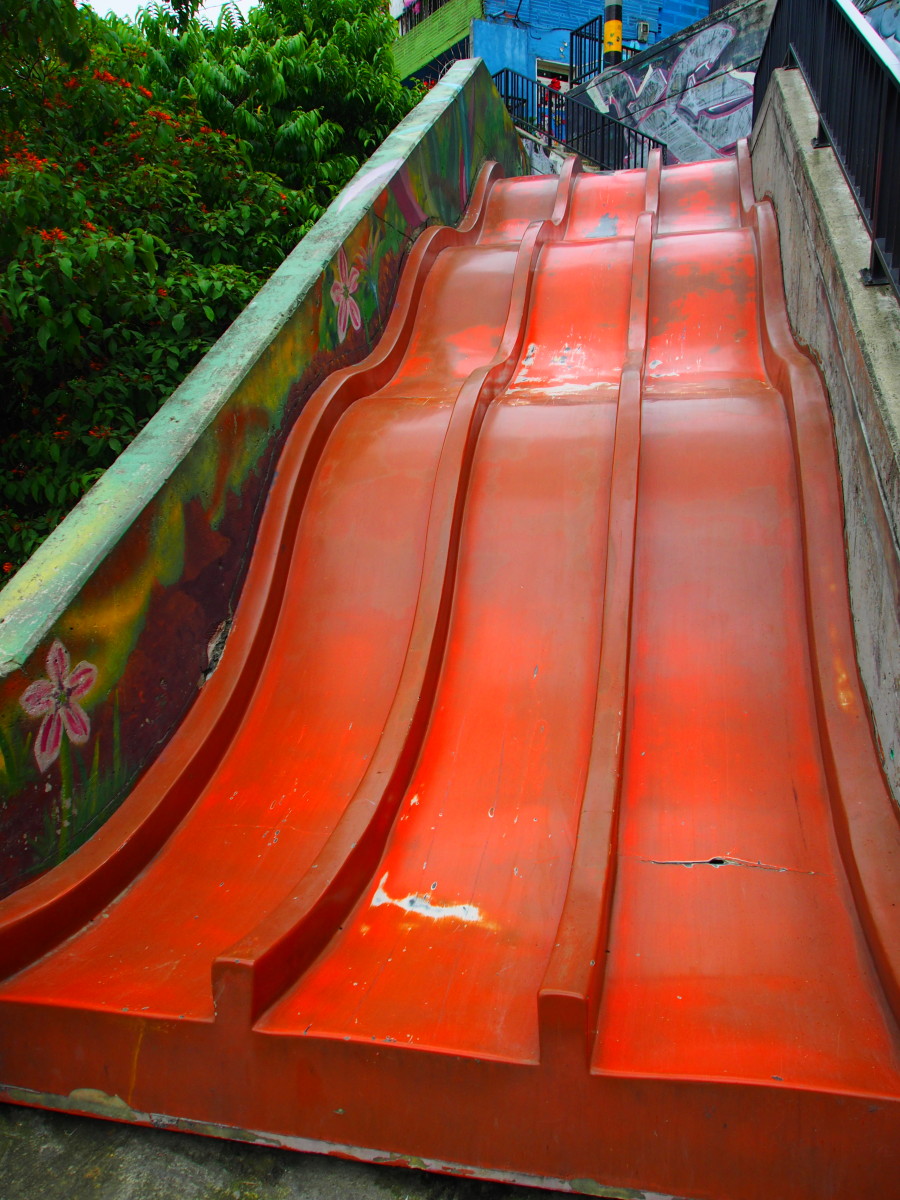 Les jeunes générations ont payé un lourd tribut à la guérilla urbaine qui a ensanglanté la Trece durant toutes ces années. Alors qu'on gravit une ruelle escarpée, Juda se souvient d'un autre drame. « Il y a cinq ans, une fusillade a éclaté entre les membres d'un gang et la police. Un enfant de neuf ans a été tué par une balle perdue. Pour lui rendre hommage, on a construit ce toboggan à l'endroit où il est mort.