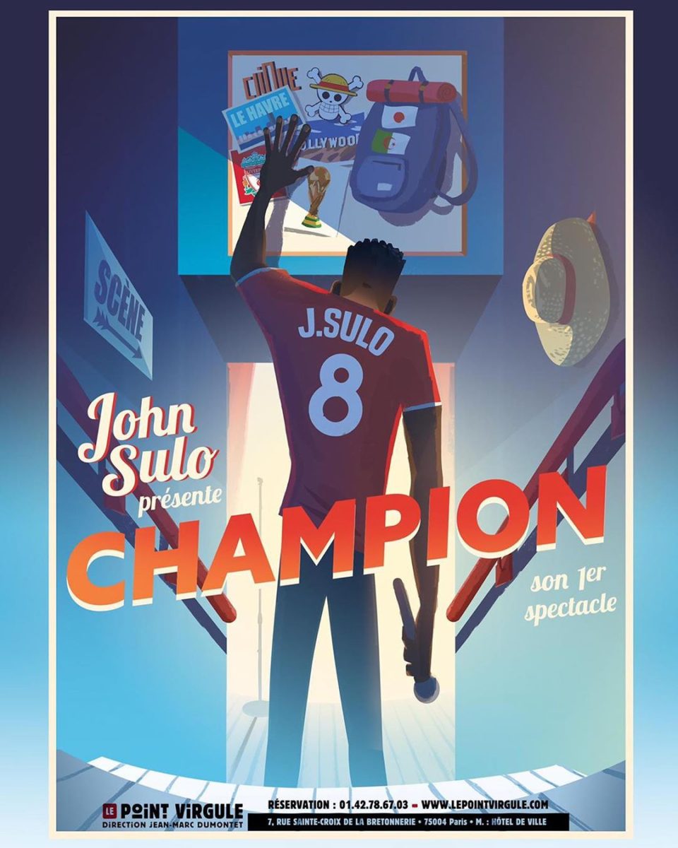 Le spectacle n'a pour l'instant que quelques semaines d'existence, mais on sent déjà qu'il atteindra sa toute puissance lorsque Sulo se sera débarrassé de l'habituel stress des premières. Sa sincérité, son énergie, et son parcours hors-normes lui garantissent, d'ores et déjà, un bel avenir sur la scène du stand-up français.En attendant d’aller voir le spectacle de John Sulo dont les billets sont disponibles ici, vous pouvez également (re)découvrir l'intégralité de son émission consacrée à la culture de l’humour sur notre chaîne YouTube. Champion, de John Sulo Au Point Virgule, 7 Rue Sainte-Croix de la Bretonnerie, 75004 Paris. Tous les dimanches, à partir du 30 mai 2021, à 19h.