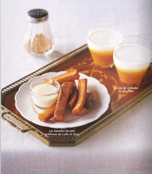 Barbecue d'aqua-viande de Water Seven, bento de pirate, riz cantonais de Gyn, penne gorgonzola aux rois des mers… Même si elles sont bourrées de clins d'oeil, les recettes du livre ne sont pas (juste) des grosses blagues inspirées de passages cultes de la série : tous les plats sont plus ou moins faciles à réaliser, et répartis selon les envies (nourrissants ou diététiques, salés ou sucrés, végétariens ou pas...). Attention cependant : forcément, les recettes de Sanji sont assez inspirées de la cuisine japonaise, plusieurs ingrédients sont donc assez peu courants en France...