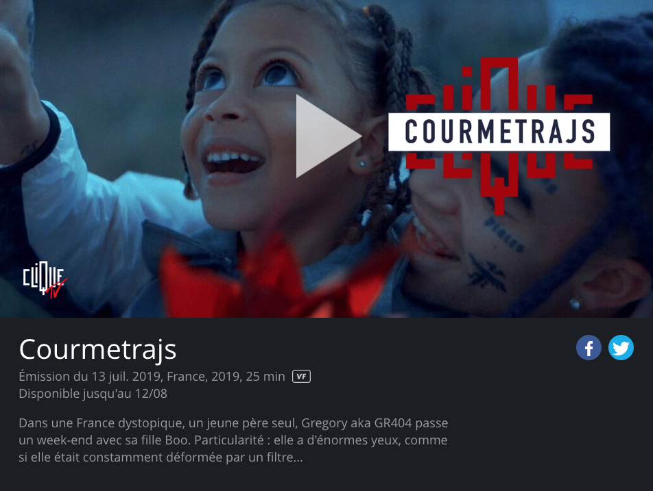 On avait repéré le réalisateur Antoine Besse avec son clip-docu "Septembre" de Mel Monty. Les choses se sont accélérées depuis : il a réalisé un superbe diptyque pour Kobo ainsi que le clip du grand retour de Nekfeu, "Sous les Nuages". Mais c'est son projet le plus personnel et le plus ambitieux qui nous intéresse aujourd'hui... Difficile de décrire "404", qu'Antoine a réalisé avec le compositeur roseboy666. Soutenus par BIG et la marque de skateboards RAVE, les deux créateurs ont imaginé un univers surréaliste dans lequel des technologies futuristes côtoient les HLM de la Grande Motte, et où les forains se battent avec des ados fans de trap. Derrière le style visuel, le réalisateur interroge nos rapports à l'autre...L'univers de "404" se décline en trois volets : le court-métrage central "404" (que l'on vous recommande de visionner en premier), puis un clip de rap et, enfin, un EP musical.Pour l'émission Courmétrajs, Antoine Besse et roseboy666 viennent présenter le projet, accompagnés de l'acteur Théo Christine et d'Aurélien Mangin de Rave. La journaliste Charlotte Vautier les fait revenir sur cette création hors norme, et nous fait découvrir les raisons pour lesquelles la petite fille s'appelle Boo et pourquoi son père a un tatouage du pokémon Mewtwo sur le cou...