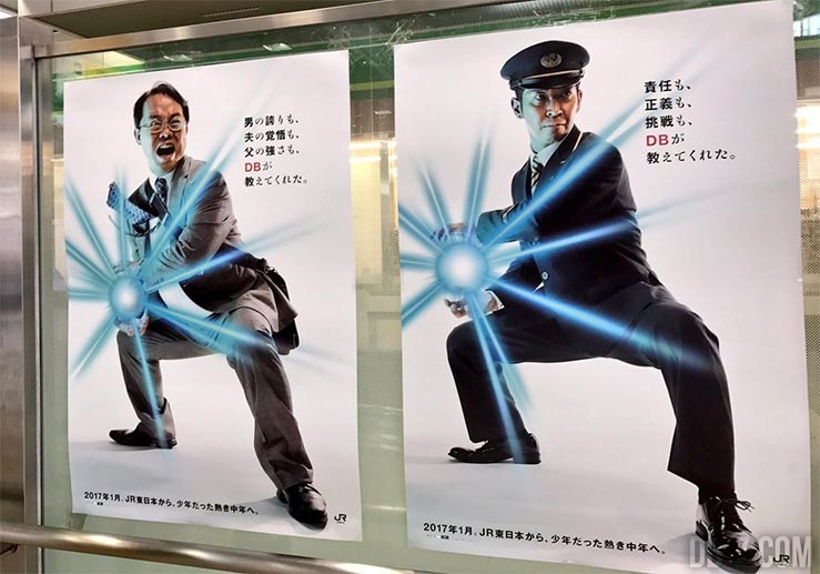 Hormis un joli carnet rempli de tous les personnages de Dragon Ball, des cadeaux sont à gagner pour les plus motivés : carddass, poster inédits, fonds d'écran pour smartphone... Parmi les joueurs qui auront réussi à récolter les 65 tampons, un tirage au sort déterminera qui aura l'opportunité d'assister à... une séance de doublage de Dragon Ball Super ! Le deuxième prix ? Sept chanceux seront les prochains mannequins de la nouvelle campagne promotionnelle de la Japan Railway. Ils se mettront dans la peau de leurs héros en... envoyant un Kamehameha. Quelques publicités de ce type avaient déjà été affichées en décembre dernier. [caption id="attachment_55316" align="alignnone" width="739"]