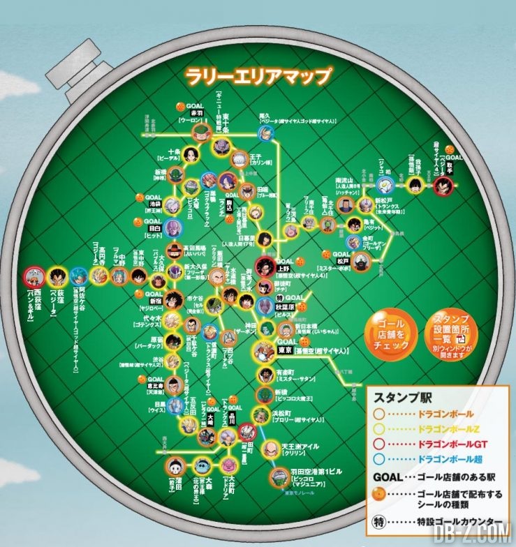 Lancée il y a quelques jours en France, Dragon Ball Super, la suite officielle de Dragon Ball Z, déchaîne les passions. Au Japon, l'engouement est à son comble : les audiences télé atteignent 6,2% (presque autant que le manga One Piece). Pour fêter ce succès, les producteurs ont décidé d'organiser à Tokyo un grand jeu taille réelle qui s'adresse à tous les fans de la série, quel que soit leur âge.Depuis le 10 janvier, les fans de Dragon Ball parcourent les stations de la East Japan Railway Company, l'un des équivalents japonais de la SNCF, plus vite que s'ils étaient sur un nuage magique. En effet, la compagnie ferroviaire a lancé un jeu de piste sur le thème du manga mythique dans les gares de tout le nord de Honshū, l'île principale du Japon. Le concept du Dragon Ball Stamp Rally (le Rallye de Tampons Dragon Ball, en VF) ? Se balader avec un carnet spécial dans 65 gares japonaises pour collecter 65 tampons correspondant chacun à un personnage. On trouvera par exemple Son Goku dans celle de Tokyo, Bulma à Nakano, ou encore Trunks à Shinanomachi. [caption id="attachment_55315" align="alignnone" width="739"]
