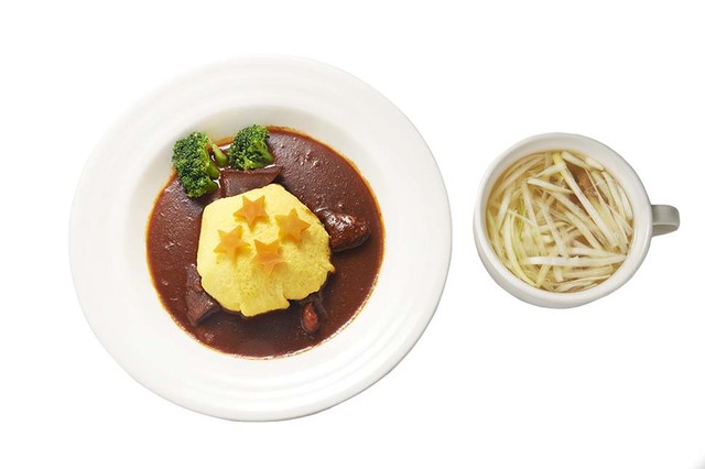 En plus de mettre des tampons à disposition, des points de vente éphémères ouverts spécialement pour l'occasion proposent de faire vivre l'expérience Dragon Ball en immersion totale, jusque dans l'assiette. Dans la gare de Tokyo, un mini-restaurant sert jusqu'à fin février des plats inspirés de la série, accompagnés de goodies. Au menu : "macarons Dragon Ball", "senzu de Maître Karin", "ramen Genki Dama"... Aperçu en images.