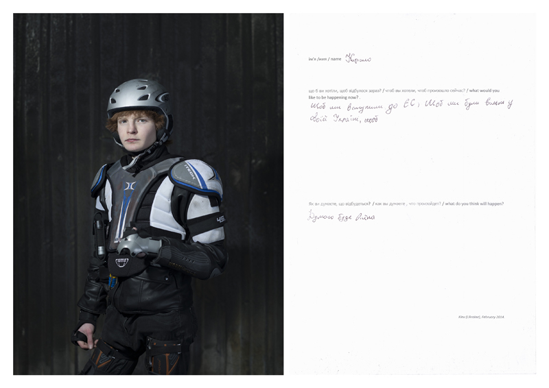 Est-ce que certaines réponses se sont réalisées ? Il y avait un adolescent qui avait répondu : "Je veux qu’on rejoigne l’union européenne et que notre pays soit libre" et à "Qu'est-ce que vous pensez qu’il va se passer ?" il avait dit "Je pense qu’il y aura la guerre". À l’époque, les amis ukrainiens avec qui j’étais m’ont dit : "Il est perché, regarde-le il se prend pour RoboCop"... Et puis, alors que l'on reparlait du projet, ils m'ont dit : "Tu te rappelles de ce gamin qui se prenait pour un ninja avec sa tenue ? C’est lui qui avait raison. On n'aurait jamais imaginé que ça allait être la guerre en Ukraine." [caption id="attachment_65589" align="alignnone" width="800"]