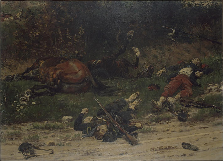 De quels tableaux t'es-tu inspiré ? Plus que de simplement m'en inspirer, j'ai reconstruit des peintures de la guerre franco-prussienne de 1870. Ce sont ces peintures qui vont introduire la photographie de guerre telle qu'elle va apparaître tout au long du XXème siècle. Cette guerre a été une défaite cuisante pour la France, donc il y a eu la question de savoir comment représenter cette défaite. Avant ça, on représentait le général victorieux, l'Empereur, le Roi... Là, il n'y a pas eu de victoire, donc on a plutôt peint des scènes de genre inspirées du naturalisme qui représentent des soldats anonymes. Dans ces peintures, on trouve l'héroïsme du combattant et l'absurdité de la guerre. [caption id="attachment_67123" align="alignnone" width="800"]