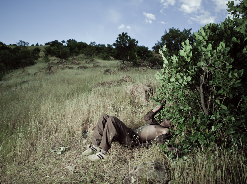 Pour ta série "Théâtre de guerre", on imagine que faire rejouer une situation aussi dure à ces combattants n'a pas dû être évident. As-tu rencontré des difficultés à les convaincre de rejouer ces situations ? J'ai fait quatorze images en trois ans. J’ai passé beaucoup de temps avec eux et nous sommes devenus amis. Je leur ai beaucoup parlé de mon travail et je leur ai expliqué ce que je voulais faire avec eux. La première photo, ils l'ont acceptée parce qu’on était devenus potes, et quand ils l'ont vue, ils ont mieux compris où je voulais en venir. [caption id="attachment_67121" align="alignnone" width="768"]