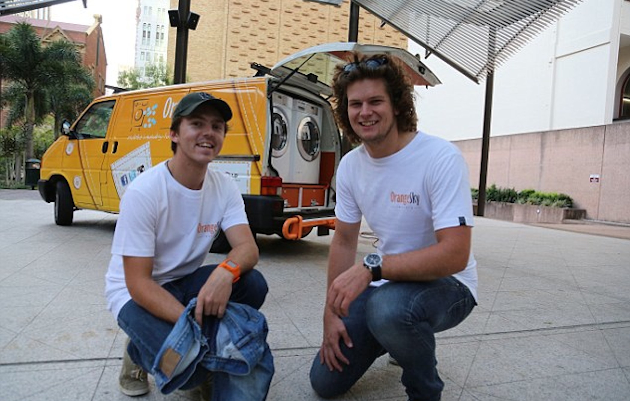 Le duo disposait d'un vieux van orange. Il l'a remis à neuf puis l'a équipé de deux machines à laver et d'autant de sèches-linges, tous récupérés. C'est de là qu'est née l'