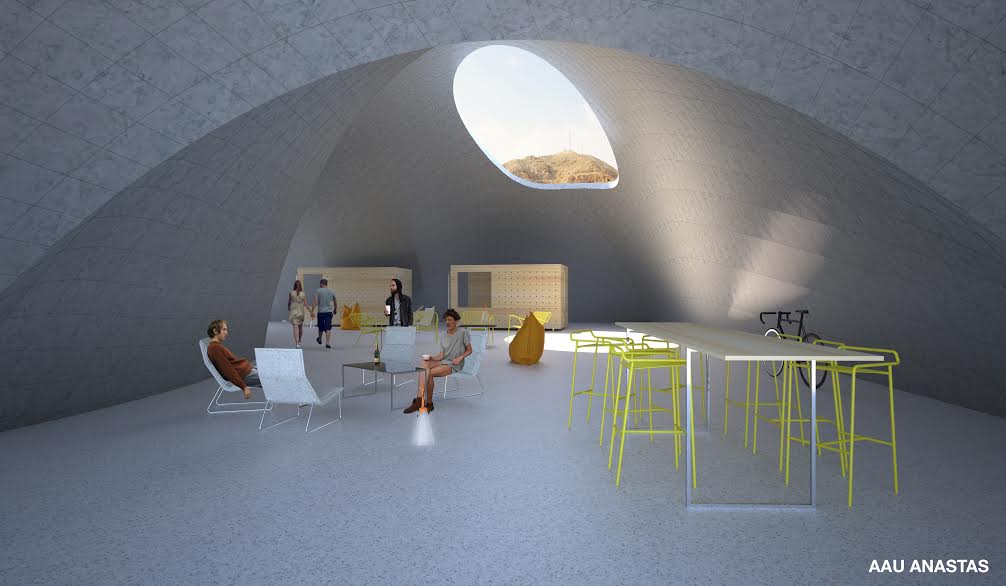 C’est un projet franco-palestinien. On est une équipe d’un dizaine de personnes à Paris, tous des amis très proches, qui ont un lien soit avec ce genre de projets, soit avec la Palestine. Des amis de l’ENS (Karim est lui-même normalien, NDLR), qui sont maintenant à Sciences Po en ou qui font des projets de thèse au Quai d’Orsay en rapport avec le monde arabe. Nous sommes en partenariat avec une agence d’architecture palestinienne, qui est aussi un laboratoire de recherche en ingénierie qui travaille actuellement sur la pierre et qui s’occupera de la construction. Vu que les dunes sont en pierre, c’est assez expérimental. Le projet architectural lui-même est une recherche.