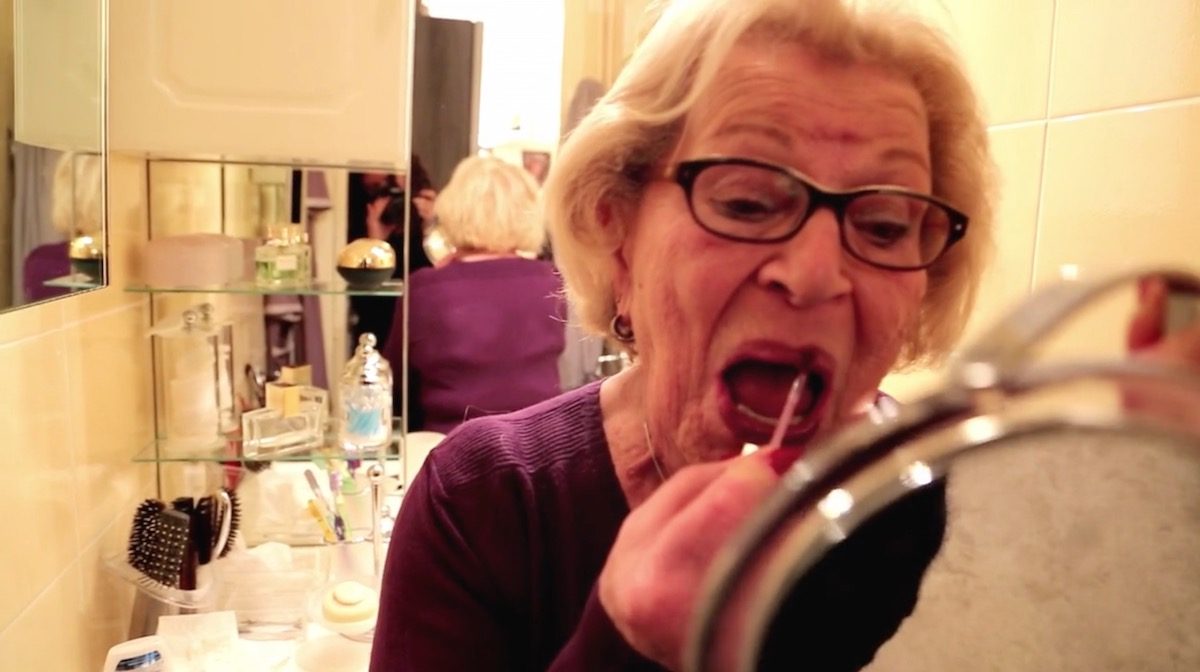 Vous avez l’air de bien manier votre smartphone, vous l’utilisez beaucoup ? Julia : Je suis dans un groupe Whatsapp, je lis tout ce que les membres de ma famille disent mais je ne réponds pas. Par contre j’envoie des textos, et puis quelqu’un m’a mis sur Facebook. Ça me gêne pas. Enfin, rien d’extraordinaire... Frankie : Mais tu utilises des applis comme Uber… Julia : T’as peut être raison d’être étonnée mais pour moi c’est normal. Il faudrait que je m’y mette plus ! Frankie, vous filmez votre grand-mère dans des moments intimes, comme sa toilette, pourquoi? Frankie : Je la trouve belle quand elle se maquille. Une grand-mère qui se prépare, qui fait encore attention à elle, à 92 ans, et qui a perdu son mari... Ça reflète aussi la mentalité qu’elle a eue toute sa vie durant. Le moment où elle se maquille dans le film relate son quotidien : elle ne l’a pas fait parce qu’on la filmait ,mais parce que c’est dans ses habitudes.