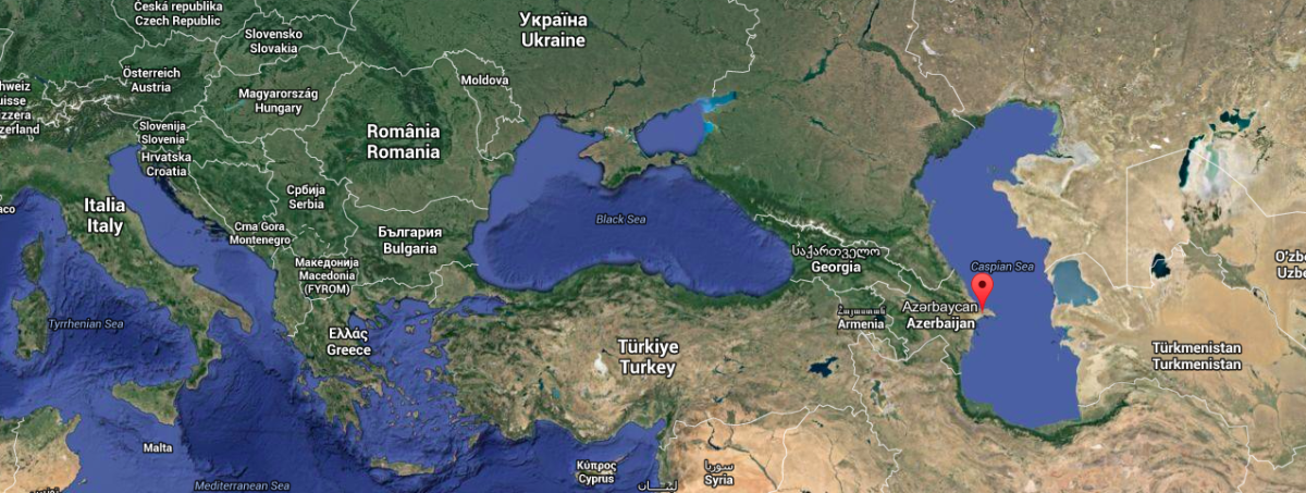 Sur la carte, Bakou, la capitale de l'Azerbaïdjan où se déroulent les jeux, est identifiée par un marqueur rouge (cliquer pour agrandir l'image).