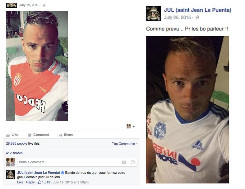 Jul pousse la complicité avec ses fans jusqu'au bout, quitte à les insulter, toujours dans un bon esprit, comme la fois où il s'est fait engueuler pour avoir porter le maillot de l'AS Monaco.