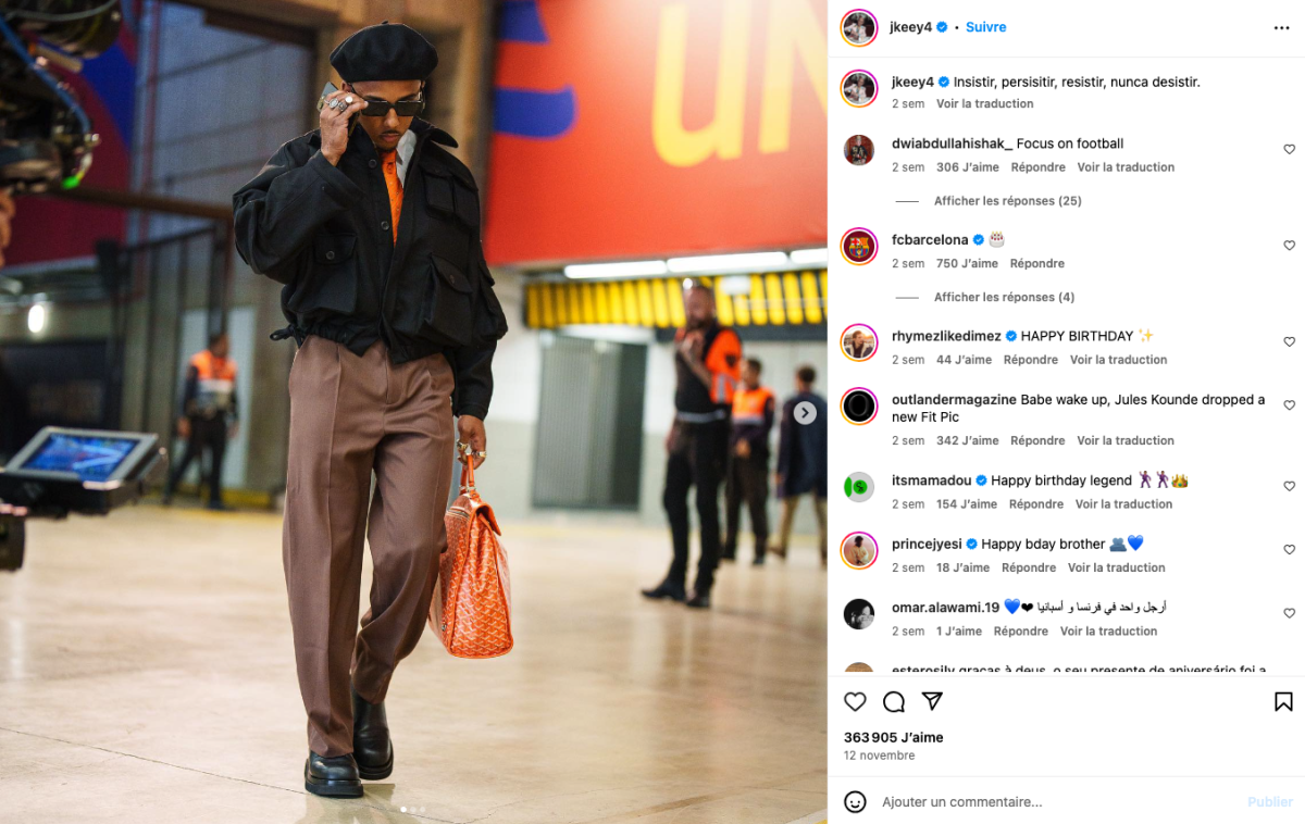 Influencé par les grandes stars de la NBA (Russell Westbrook et Allen Iverson, notamment), Jules Koundé fait partie de ces sportifs qui tournent le dos au combo claquettes-chaussettes afin d'affirmer un style digne de ce nom, recherché, osé, et donc forcément commenté, voire même moqué. C’était le cas, dernièrement, lorsqu’il apparaissait looké comme Batman ou Néo dans Matrix. Mais ça l’était déjà étant petit, lorsqu’il récupérait les vêtements d’un de ses cousins, de deux ans plus âgé.