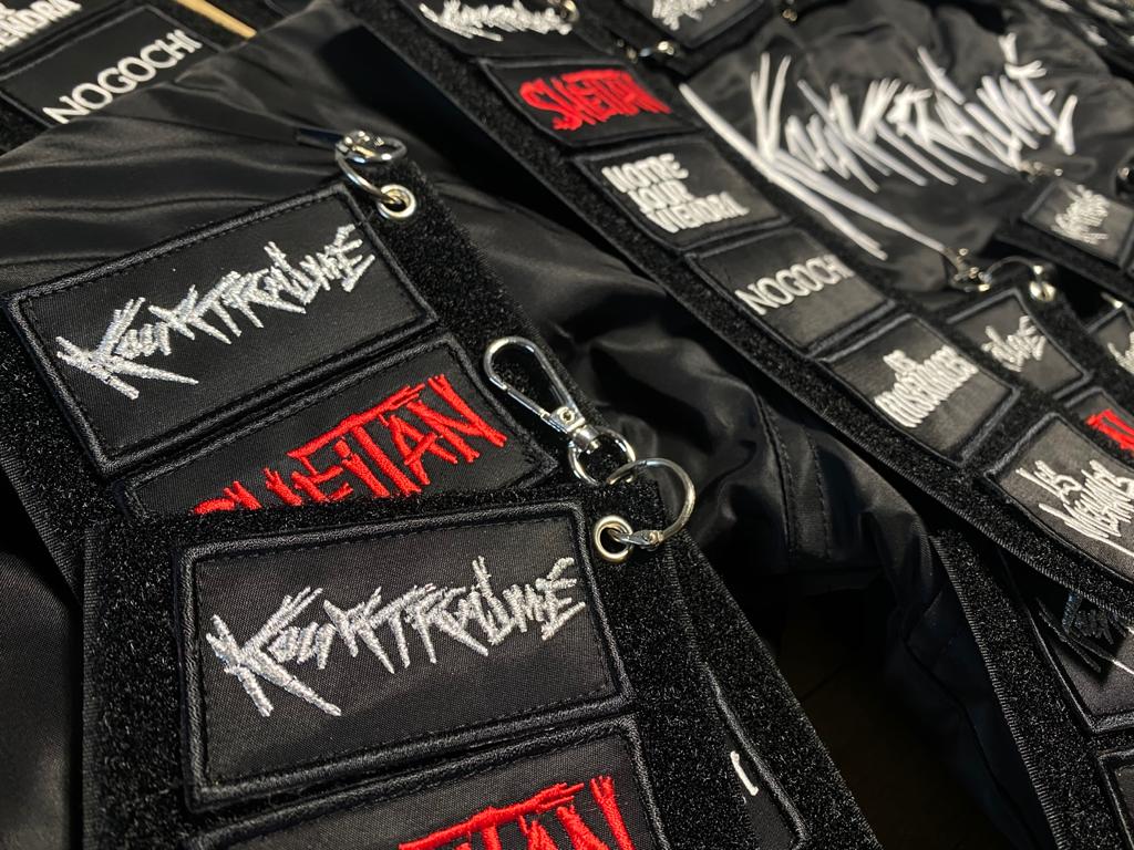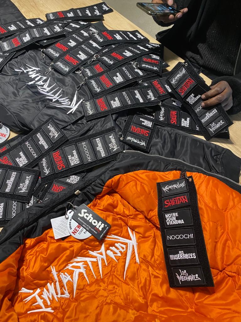 Chaque bomber Schott x Kourtrajmé s’accompagne d’une collection de six patchs collector.Outre le logo du collectif, on retrouve ceux des premiers longs métrages de chaque réalisateur de la bande - "parce que les premiers pas, ce sont les plus importants", explique Kim Chapiron. En plus de son film Sheitan, de Notre Jour Viendra de Romain Gavras, des Misérables de Ladj Ly, de Nogochi, le film fantastique de Toumani Sangaré,