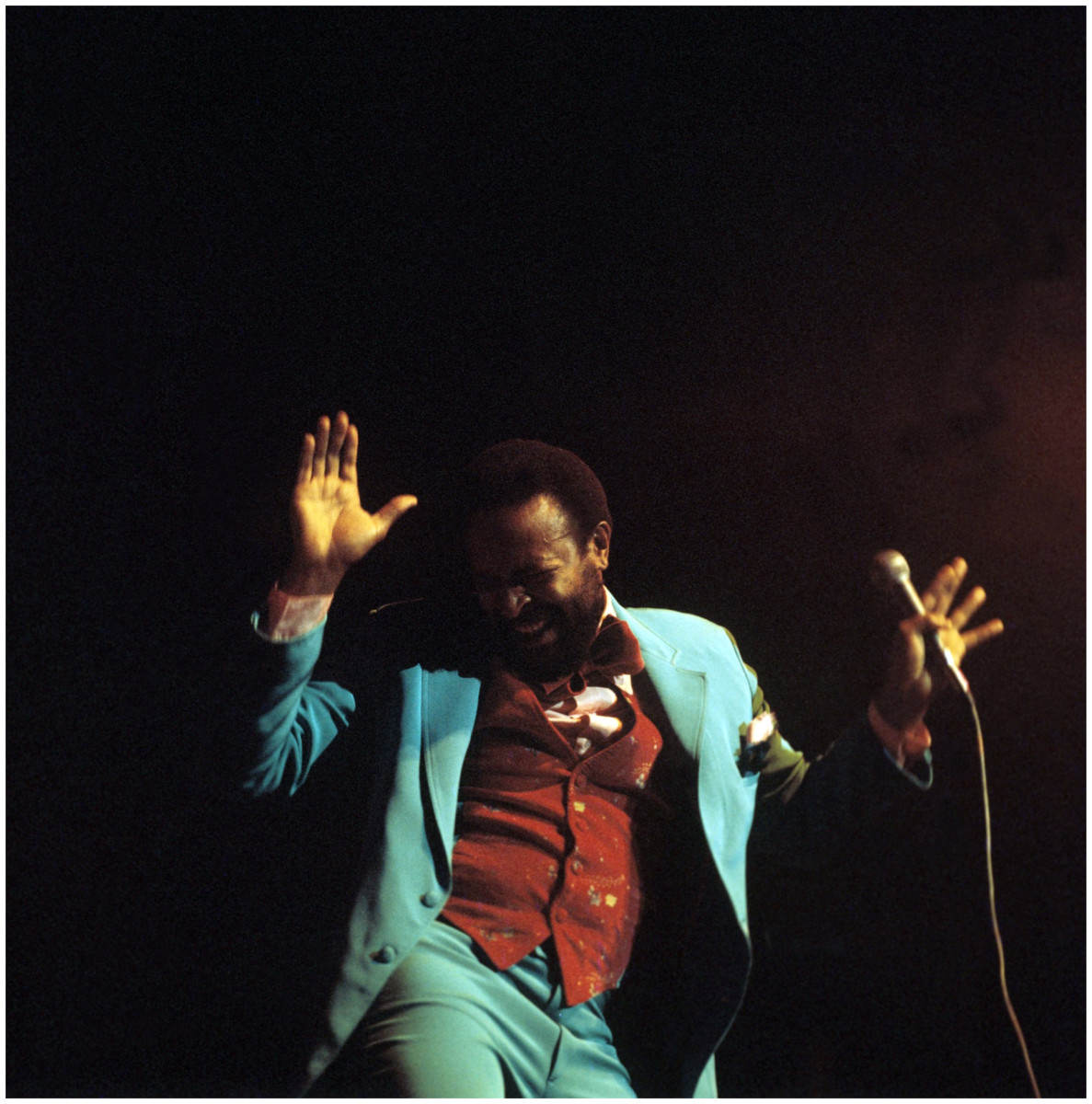 Marvin Gaye en concert à Londres, en 1976. Photographie via jazzinphotos.