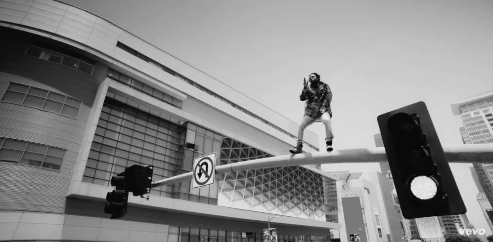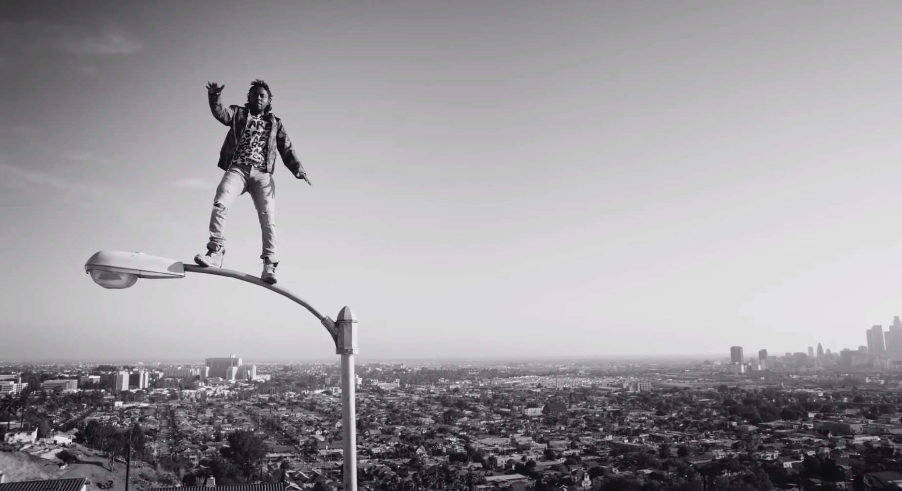 Du noir et blanc, du grand angle, des cascades et de l'apesanteur pour le clip d' "Alright", tourné dans les rues de Los Angeles et dans la Bay Area, et réalisé par Colin Tilley. La preuve que personne n'arrête Kendrick, même pas la gravité.