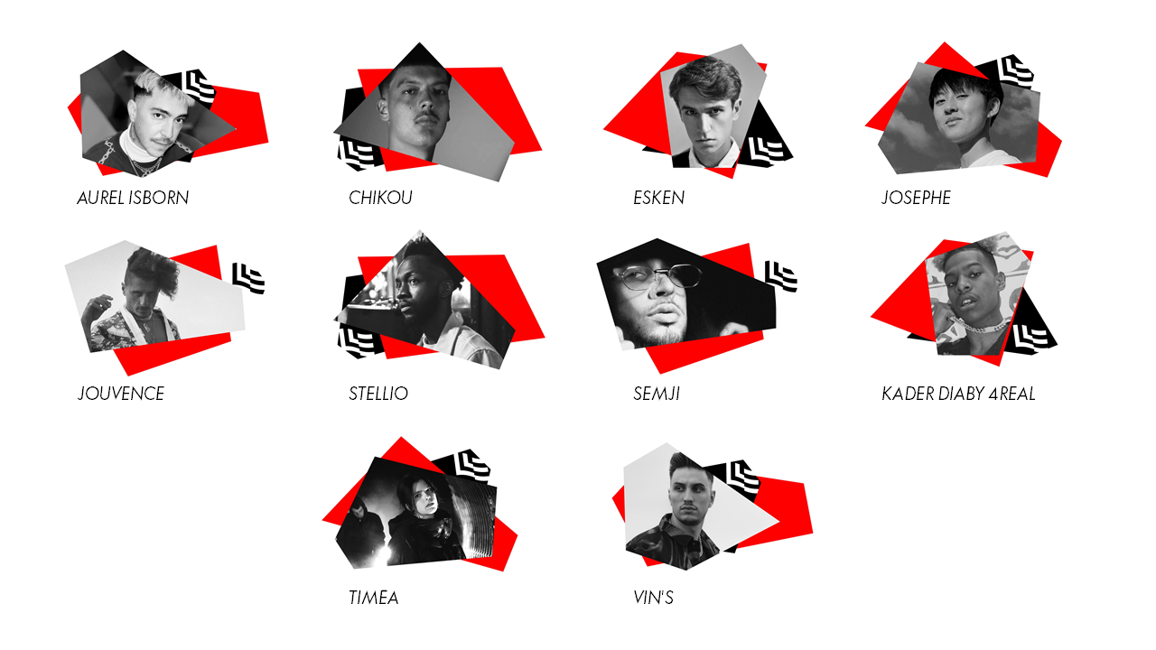 Voici les 10 lauréats qui remportent 1 an d’accompagnement par ce comité d’experts, 1 enregistrement studio et 1 clip produit sur-mesure :