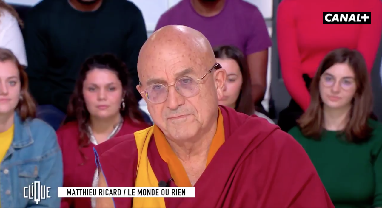 Le moine bouddhiste Matthieu Ricard était invité chez Clique à l'occasion de la publication d'Émerveillement aux éditions de la Martinière. Celui qui prône la recherche du bonheur, l'altruisme et l'entraide contre l'individualisme publie cet ouvrage qui invite à s'émerveiller "de tout, du rien, du simple, de la feuille, de la brindille, du rocher, de l'eau." Et à retrouver un regard d'enfant sur la nature. Sur le plateau, il déclarait "Ceux qui ne croient pas au réchauffement climatique font preuve d’obscurantisme."