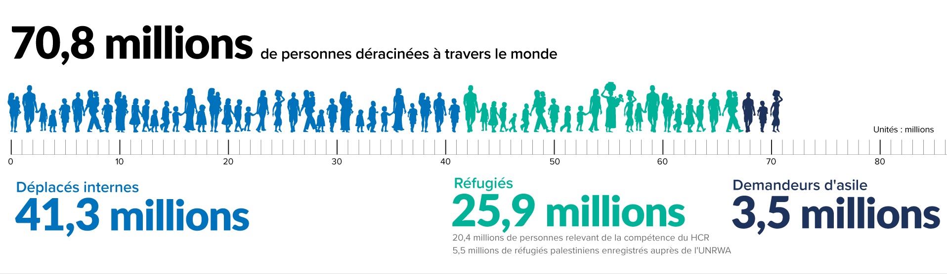 Nombre de personnes déracinées à travers le monde en 2018 d'après le HCR.
