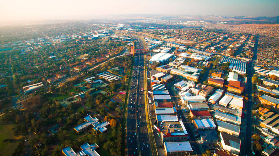 Le quartier chic de Sandton à Johannesburg, capitale économique de l'Afrique du Sud, face au township d'Alexandra , dans lequel Nelson Mandela a vécu pendant un an en 1941.