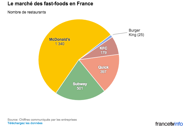 Le nombre de restaurants de fast-food en France selon franceinfo (sept. 2015)