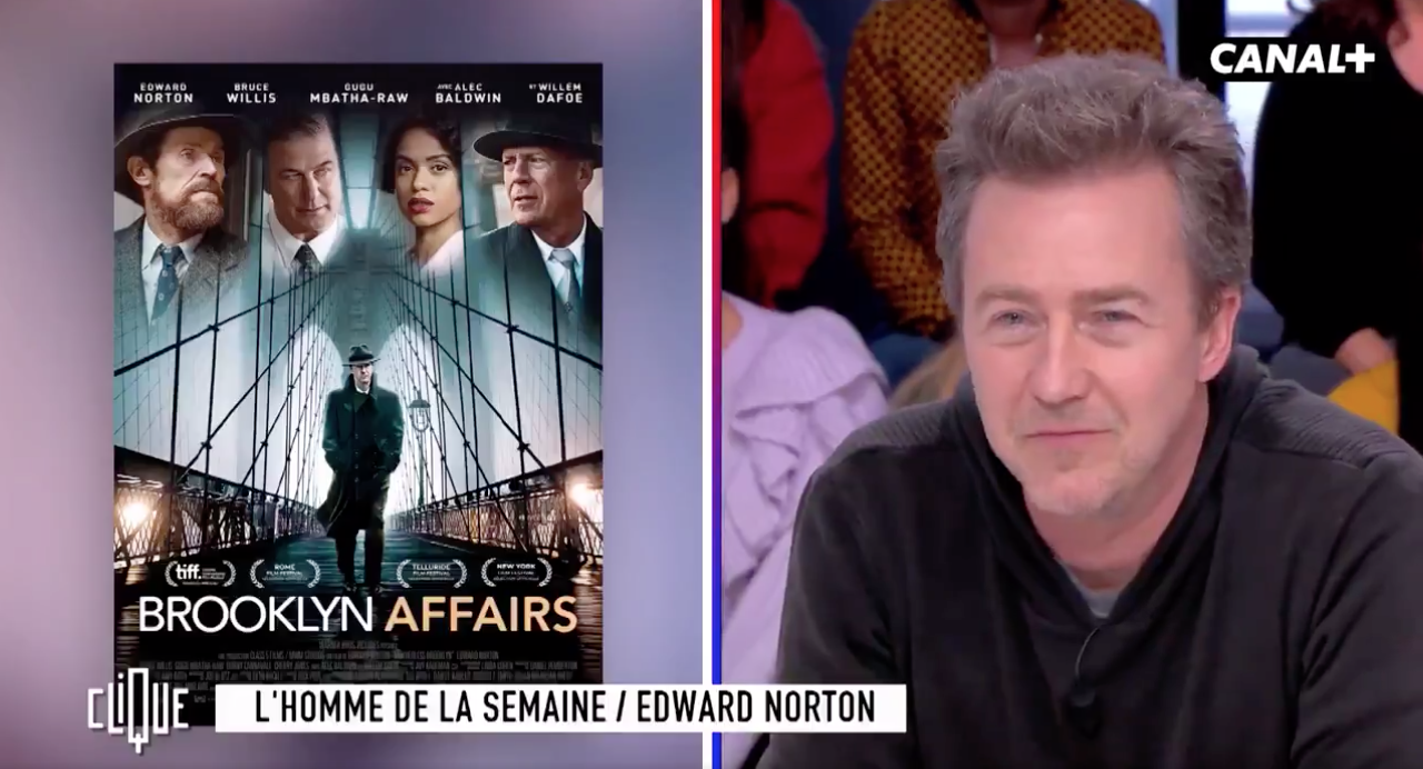 L'acteur, producteur et réalisateur américain légendaire Edward Norton était invité chez Clique à l'occasion de la sortie de son deuxième film derrière la caméra : Brooklyn Affairs. Un projet sur lequel il travaille depuis près de vingt ans, qui raconte l'histoire d'un détective privé (joué par Edward Norton lui-même) atteint du syndrome de la Tourette qui, durant les années 50, enquête sur la mort de son mentor. Un film qu'il qualifie de "noir, avec un anti-héros comme dans Rain Man ou Forrest Gump." Sur le plateau, il nous a également parlé de son grand-père, qui l'a inspiré pour réaliser ce film, et de sa scène culte dans La 25ème heure de Spike Lee.