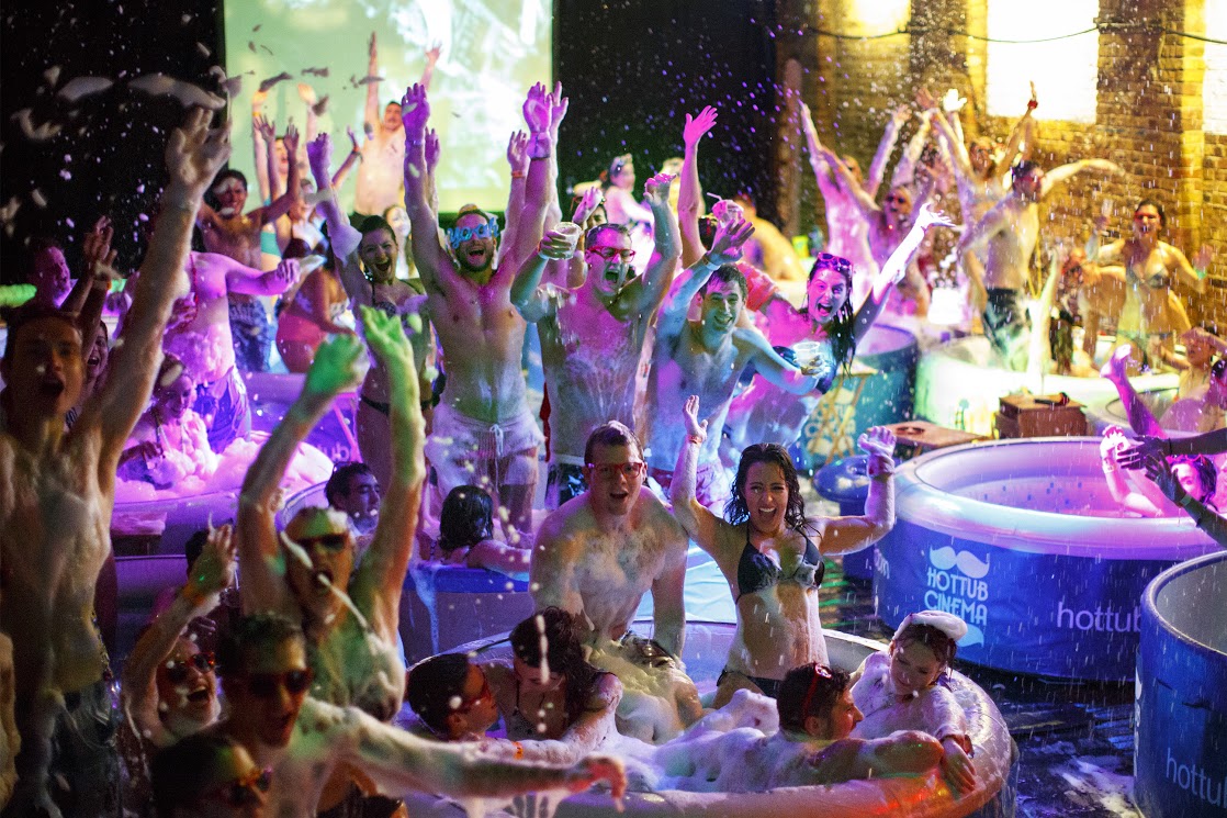 « Ce n’est pas qu’on ne grandit pas, c’est que tout le monde est un peu nostalgique et a envie de se reconnecter un peu à l’enfance. »On descend un peu la rue peuplée de looks improbables sur fond de street art pour rejoindre une station de métro désaffectée. Ici se tient le Hot Tub Cinema, qui propose des projections de films dans des jacuzzi. Ce soir, c’est Aladin, en version karaoké. Le concept vient de deux amis de fac, Nick Palh et Asher Charman (respectivement directeur et fondateur de la compagnie), qui ont commencé à organiser des séances avec leurs amis pour s’amuser… aujourd’hui, les séances se tiennent régulièrement en été sur un toit, en hiver dans cette station de métro désaffectée. Les deux fondateurs ont même commencé à exporter avec succès le concept il y a peu à New York et à Ibiza. De nouvelles séances « pillow cinema » ont aussi été lancées il y a quelques semaines avec une politique « pas d’oreiller pas d’entrée » et des gros poufs pour se vautrer confortablement. On rejoint notre jacuzzi, salue nos deux voisines dont l’une semble passablement éméchée et connaît toutes les paroles du classique de Disney qu’elle anticipe, refaisant tour à tour toutes les voix. Son amie a beau essayer de la contenir, on commence à se demander si elles ne sont pas en plein reportage « J’ai testé le Hot Tub Cinema sous acide ».