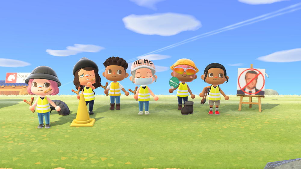 Image à la une : Manifestation virtuelle dans Animal Crossing New Horizons, via @hiankey
