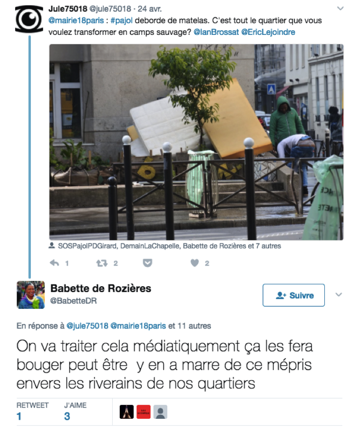 Des riverains propriétaires insensibles qui ne supportent plus de voir la pauvreté sous leurs fenêtres et qui voudraient voir leurs mètres carrés tripler de valeur comme dans tous les autres arrondissements, mais doivent faire sans la hausse, cause migrants ?