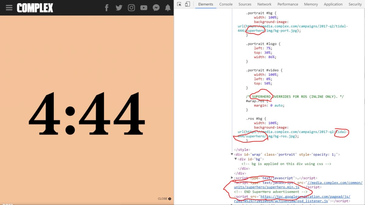 Dans le code du site Complex, qui diffuse la bannière, on voit bien s'afficher le mot "Tidal".